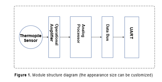 Description: VT-IR-UART is a digital infrared temperature measurement module, integrating self-developed MEMS thermopile infrared sensor and 32-bit embedded microprocessor chip, equipped with low noise amplifier, 18-bit A/D converter and DSP Components such as the processing unit perform digital output through the IIC interface, and the accuracy of human body temperature measurement can reach 0.2°C.