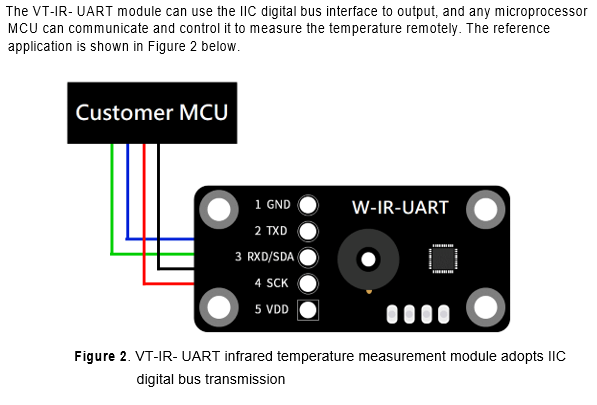 3.The VT-IR- UART infrared temperature measurement module supports the user's